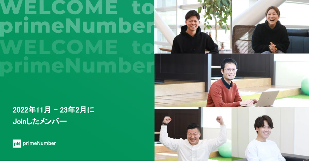 こんにちは、primeNumberです。今回は2022年11月-23年2月にJoinしたメンバーから、自己紹介をして貰います。海外戦略担当、採用人事、データアナリストなどなど、幅広い業種のメンバーが入社しました!