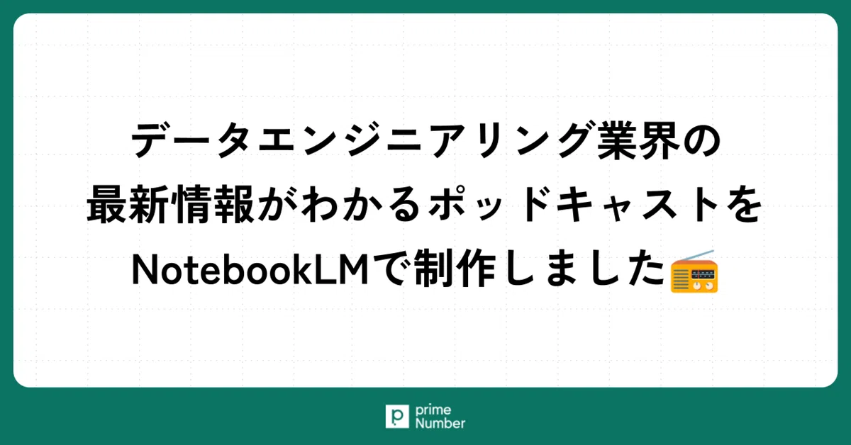 Data Engineering Newsは、TROCCOのブログで掲載している同名のコラムの内容をポッドキャスト化したものです。データウェアハウスやETL、BIなどデータエンジニアリング業界の最新情報やアップデートについて、primeNumberのメンバーが共著しています。