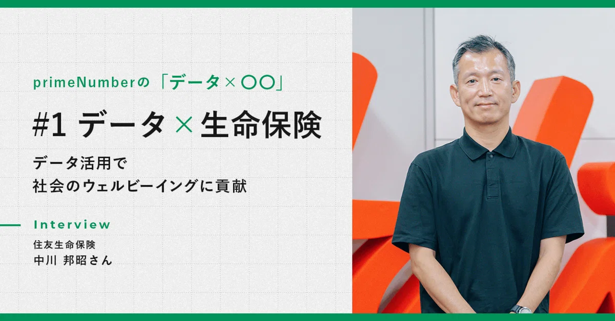 primeNumber(プライムナンバー)の代表 田邊雄樹が、さまざまな業界で活躍するデータ活用のキーパーソンにお話を伺うインタビュー企画「データ×〇〇」。第1回は住友生命保険 情報システム部上席部長代理の中川邦昭さんです。同社は、さまざまな生命保険商品やサービスを扱い、「スミセイ」の愛称で知られる1907年創業の老舗企業です。近年、社内システムの刷新を実施。DXを進める一方で、2018年に健康増進型保険“住友生命「Vitality」”を発売。1国1社のみがライセンスを結んでいるサービスですが、その導入はデータ活用やシステム管理のスタンスを大きく変えることになったと言います。その導入の裏側も含め、中川さんが考えるデータの活用や未来との関わりについて伺いました。
