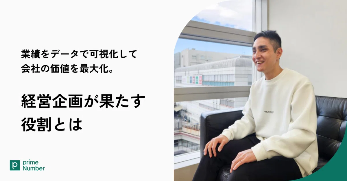 こんにちは、primeNumberです。今回は経営企画の嶋本幸之助さんに、データを活用した業績可視化の取り組みや経営企画の役割についてお話を伺いました。