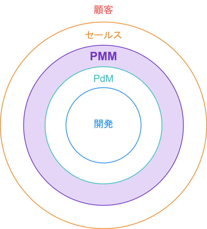 鳩: セールスが一番外側にいて、開発が内側にいるとすると、その間の開発に近い所をPdM(プロダクトマネージャー)が埋めていて、PdMからセールスまでの間をPMMが埋めているイメージです。プロダクトの企画やデリバリーも、PdMやセールスと協力しながら行っています。