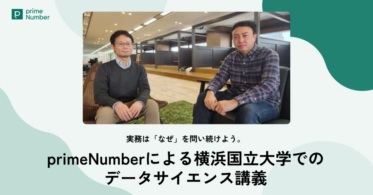 今回は横浜国立大学での講義活動について、プロダクトマーケティングマネージャー(以下PMM)の鈴木大介さんとデータアナリストの小宮山誉人さんにお話を伺いました。primeNumberで日頃から企業のデータ活用を支援する実務家の2人が、学生たちにどのような学びを提供しているのか。その取り組みについてご紹介します。